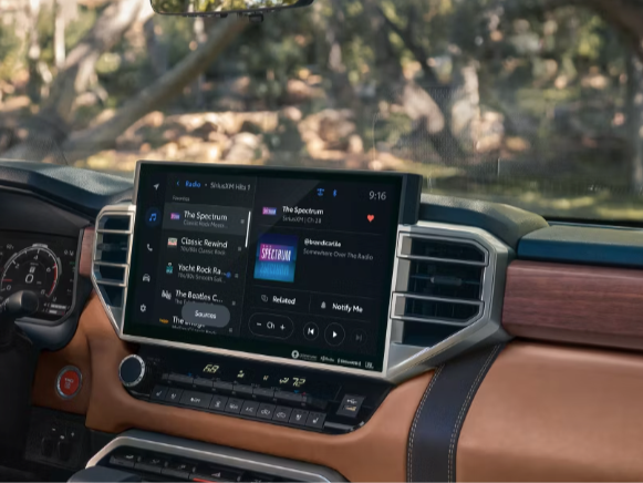 Step into the 2025 Toyota Tundra, and you’ll find a cabin that’s just as bold and capable as what lies under the hood. Built for comfort, durability, and cutting-edge connectivity, the Tundra’s interior offers an upscale feel across every trim—making long hauls, daily drives, or job site duties more enjoyable and intuitive than ever. Whether you're navigating through New Braunfels, exploring San Antonio, or heading out from Kyle or Austin, the Tundra’s interior makes every journey smoother and smarter. The SR trim offers a tough, practical space designed with hard-working drivers in mind. It features durable materials, easy-to-clean surfaces, and a user-friendly 8-inch touchscreen with wireless Apple CarPlay® and Android Auto™. Thoughtful touches like multiple USB ports and a 4.2-inch digital driver display ensure you're connected and informed on the go. Moving up to the SR5, the cabin adds more comfort and tech enhancements. Optional upgrades include a massive 14-inch touchscreen, dual-zone climate control, and available soft-touch materials throughout. It also opens the door to more convenience features like power-adjustable front seats and expanded storage, giving this trim everyday livability with a rugged edge. The Limited trim delivers a step into luxury, offering heated and ventilated front seats, a leather-wrapped steering wheel, and standard dual-zone climate control. A 12.3-inch digital gauge cluster replaces traditional dials, while the upgraded infotainment system with cloud-based navigation and voice commands keeps you seamlessly connected. Additional features like a wireless charging pad and premium audio system elevate the experience further. In the Platinum trim, refinement reaches a new level. The cabin is outfitted with premium leather-trimmed seats, real aluminum or open-pore wood accents, and ambient lighting that sets the mood for any drive. You’ll also enjoy driver-assist upgrades like a head-up display and a panoramic view monitor—perfect for city maneuvering or trailering with precision. The 1794 Edition brings a signature Western-inspired design to the Tundra’s interior, complete with saddle-brown leather seats, authentic wood trim, and unique badging. It’s a nod to Texas heritage, offering plush comfort with the same commanding presence and practicality the Tundra is known for. From workday functionality to weekend-ready luxury, the 2025 Toyota Tundra’s interior is built to adapt—making it more than just a truck, but a premium space for life on the move.